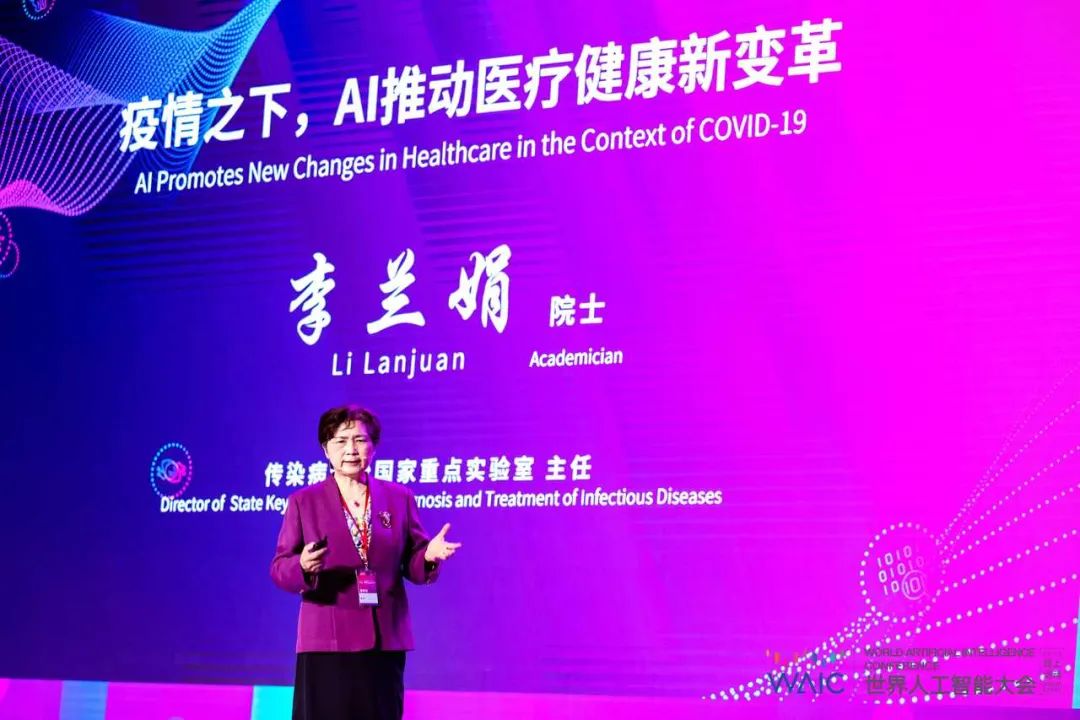 2020年,新型冠状病毒在全球范围内蔓延开来,成为全球公共卫生问题。李兰娟院士在会上分享中国抗疫成果及人工智能在防疫中的应用时表示,在疫情防控当中,AI在包括公共卫生、疫情研判、情绪管理、地图服务、基因检测、药物研发,互联网医院等等发挥了非常重要的作用。