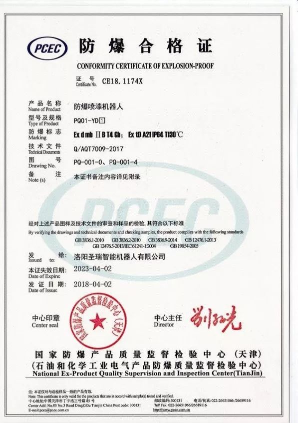 针对以上情况,该款机器人整机已经取得爆炸性环境下的防爆合格证,验证了机器人的可靠性和安全性,为其在更多的防腐作业领域中大显身手提供了有力的支持。