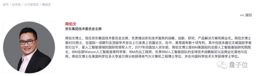 2017年,周伯文回国加入京东,开始负责AI研究与平台部相关业务。