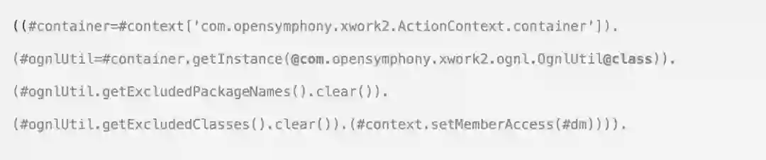既然知道了漏洞触发点构造ongl语句是不是就可以直接远程命令执行了?当然还是不能,因为Struts2自己的安全管理器,对非法字符进行了黑名单校验。像我们要想执行命令的Runtime ,System,Classloder的危险类全部禁止掉了,那我们怎么去执行系统命令。