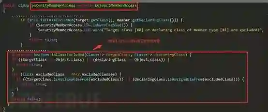 _memberAccess是OgnlContext中的一个属性,这是一个权限类SecurityMemberAccess继承了DefaultMemberAccess。其中的isClassExcluded就是循环的判断是否。