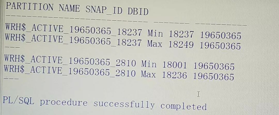 PARTITION NAME SNAP_ID DBID