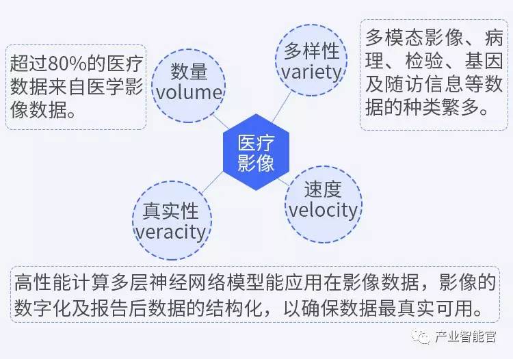 从细分领域融资数量图看出,医疗影像占比较多,为什么会发生这样的状况?影像具有4V性(volume数量、variety多样性、velocity速度、veracity真实性),4V的属性更适合其AI的发展。