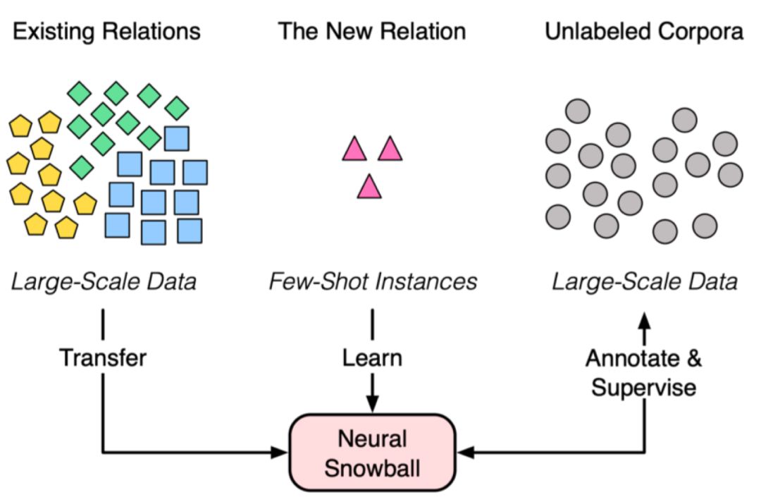 本文对清华大学孙茂松、刘知远团队完成、被 AAAI-20 录用的论文《Neural Snowball for Few-Shot Relation Learning》进行解读。目前的关系抽取,面临着开放式的关系增长问题,目前已有有监督、半监督、少次学习和自启动关系抽取,这些方法涉及到了三种类型的数据:在已有关系类型上的大规模监督数据,对于新关系的少量标注数据,以及大规模的无监督数据。高天宇等人提出Neural Snowball,充分利用了这三种数据,进行关系抽取。