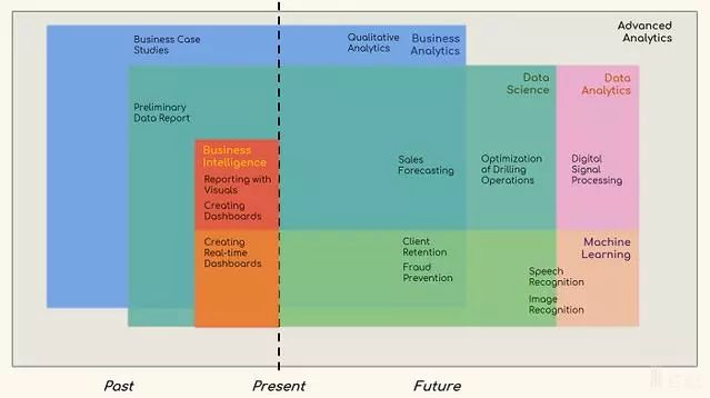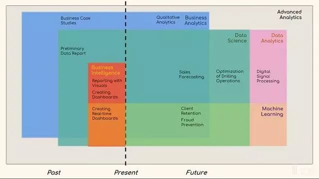 不过,需要说明的是,存在不直接和即时业务分析但属于数据分析的数据科学流程。例如,“优化钻井业务”需要数据科学工具和技术。数据科学家很可能每天都这样做。但是,虽然在“石油业务”领域,我们不能真正说它与Business Analytics直接相关。