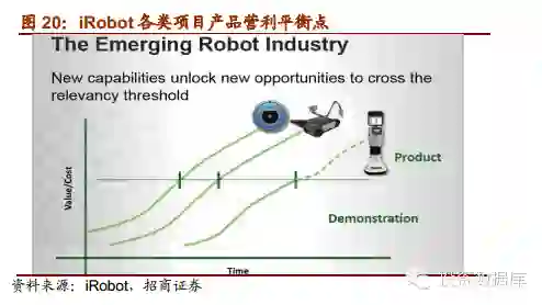 iRobot的产品战略布局以家居清洁机器人为主。家居清洁机器人所需投入成本较其它产品低,最早成为现金牛,为新研发的更高级产品提供资金支持。目前远程视频机器人成功研制,开始进入营销阶段。