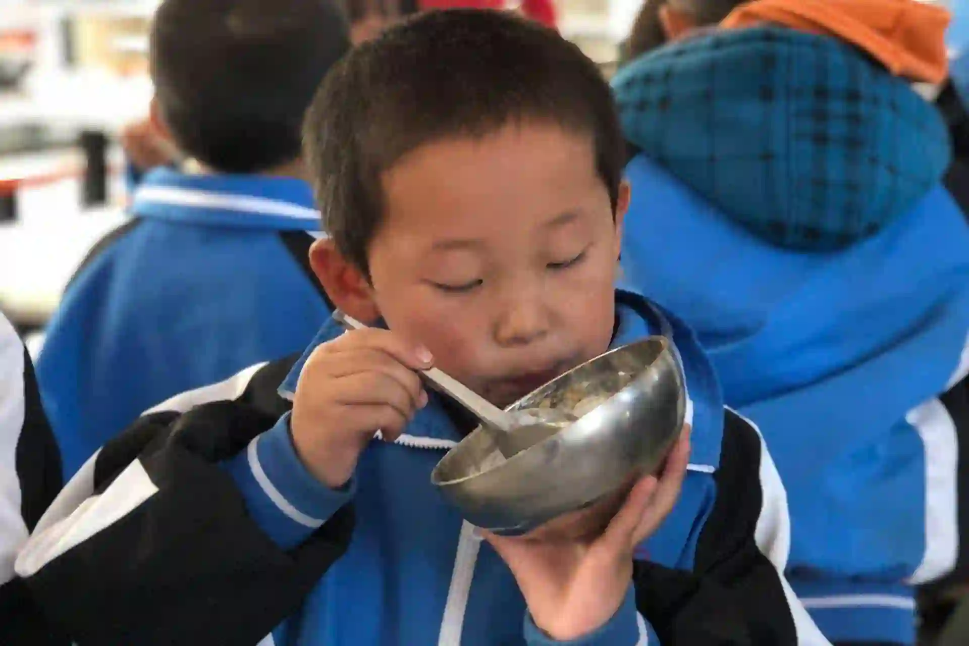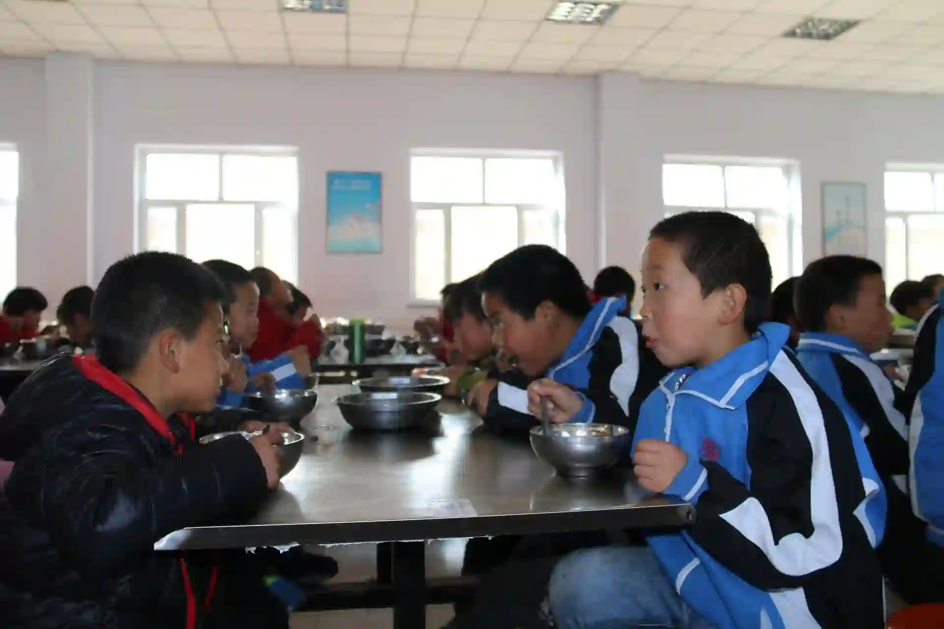 捐赠仪式结束后,已经是午饭时间,我们跟随校方来到孩子们用餐的食堂。在老师的带领下,他们有序排队就坐,开始吃午饭。在这里,真的要向就职于深山里的教师们致敬,他们不仅要教课,还要负责孩子们的衣食住行,既是老师又充当了“保姆”。餐桌上,没有水果,没有酸奶,没有丰盛的饭菜,只有一个白菜炖肉。虽然知道这里的条件不算是最差的,但看到这些还是会有些心酸。孩子们吃的津津有味,脸上洋溢着满足和酣畅。条件虽然有些艰苦,但这并不影响他们接受良好的教育,很多孩子真的做到了不浪费一粒粮食。看到这里,我们中的很多人都为自己平时的挥霍浪费感到惭愧。希望看到这篇文章的每一位小伙伴以后都能做到盘中无剩饭,因为路上有饥人。