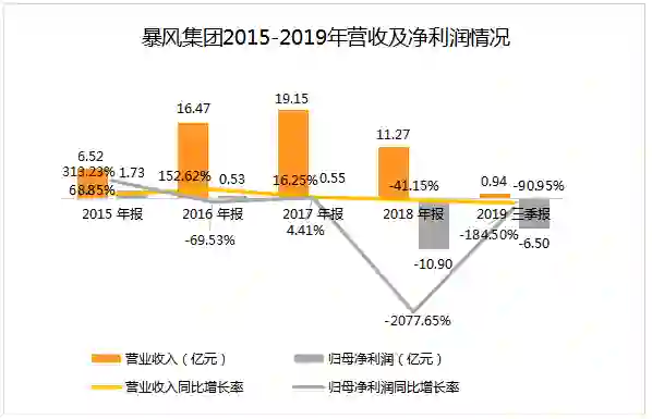 2016年开始,暴风集团业绩开始出现明显下滑,虽然在2017年有