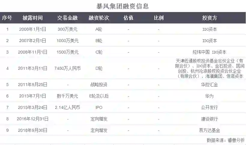 据显示,从公司成立到IPO,暴风科技先后经历了7轮融资,累计金额超6亿元人民币,先