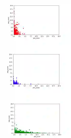 我们利用朴素贝叶斯训练的结果建立了一个积极和消极的词汇库。当处理给定的句子时,我们将每个单词打为正分或负分,并通过基于开源库 spaCy 的管道进行语音结构的精确分析来计算总分数,用于词性标注和依赖性分析。结果,我们得到了正、负和中性分数的参数,中性分数被定义为句子中既不是正面也不是负面情绪单词的比例。我们使用深度学习技术从训练集中推导出这些得分与情绪之间的关系。以下是我们针对消极、中性和正面情绪句子获得的图表: