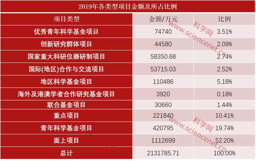 2019年国家自然科学基金共为1437个单位的所属科研机构提供了资金支持,立项总数超42000项,总金额高达213亿元。