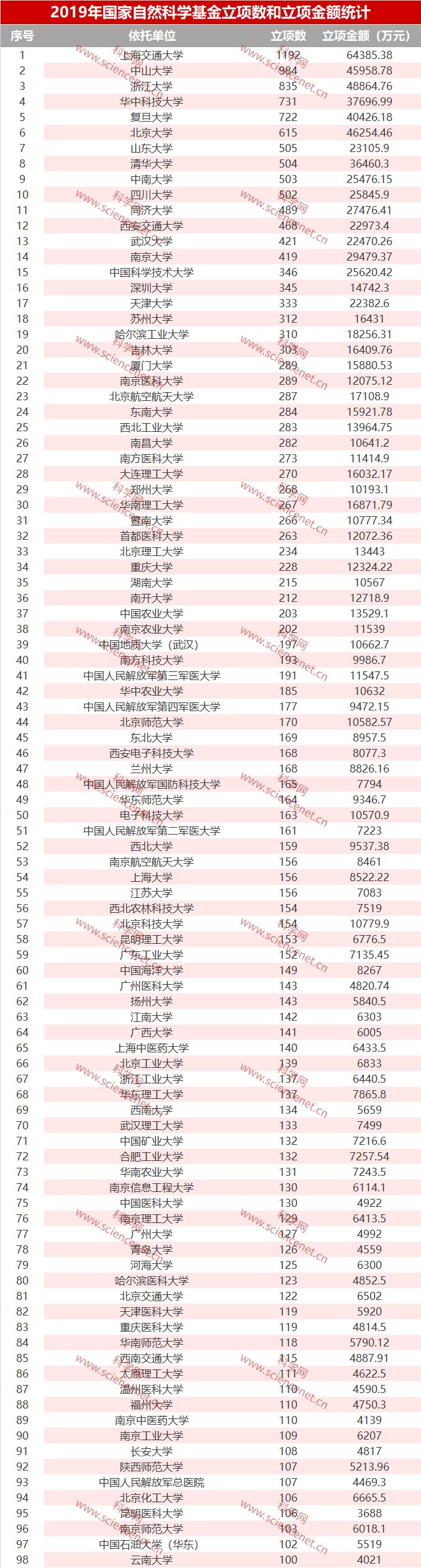 科学网对今年全部高校和科研单位获得的国家自然科学基金立项数和立项金额进行了统计。