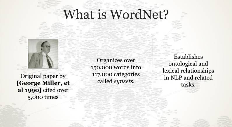 在 20 世纪 80 年代末,普林斯顿大学的心理学家 George Miller 启动了一个名为 WordNet 的项目,旨在构建英文语言层级结构的模型。它就像某种形式的字典一样,但是每个单词都会与其他相关的词相联系——而非以字母表形式呈现。例如,在 WordNet 中,单词「dog」在单词「canine」之下,而后者在「mammal」目录之下,往上往下都有更多的层级。这是为了让语言组织成为机器可读的逻辑,它已经积累了超过 155,000 个单词。