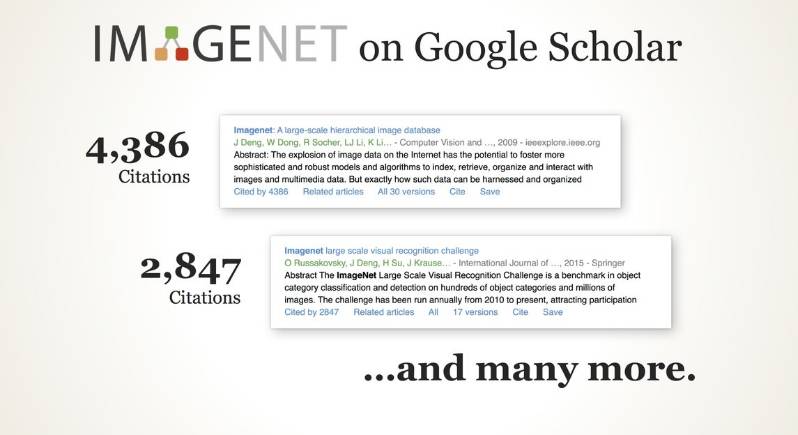8 年来,ImageNet 这篇论文对业内有极大的影响。在 Google Scholar 上,该论文有 4386 的引用量。另一篇论文《ImageNet Large Scale Visual Recognition Challenge》(2015),也有 2847 的引用量,这篇论文描述了 ImageNet 数据集基准的创造、物体识别领域的研究进展。