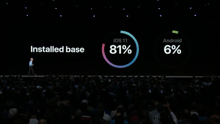 在讲述 iOS 12 之前,Craig Federighi 表示 iOS 11 的客户满意度达到了 95%,一半用户在 7 周内升级到 iOS 11,并顺手鄙视了 Android。