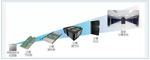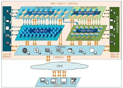 神威·太湖之光系统是基于国产处理器,采用自主研发的高效可扩展的十亿亿次量级体系结构构建的世界最高性能的超级计算机系统。系统设计并实现了高密度运算紧耦合弹性超节点结构,超节点内实现256个CPU无电缆全交叉互连,超节点间通过资源池热备份技术实现了全系统规模下的超节点弹性可扩展,支持大规模运算核心的高效并行运行,适应计算密集、通信密集和I/O密集课题运算需求。