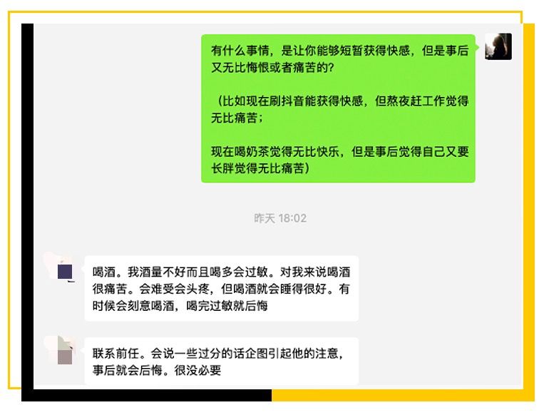 比如喝酒、比如突然联系上前任。