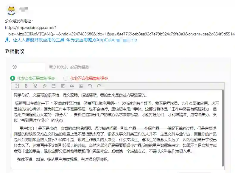 每一次作业提交后,导师都会亲自逐个进行点评。只要你写,就给你行动指南般的反馈,一针见血,让你发现问题和不足,及时改进,再也不用靠自己瞎摸索。