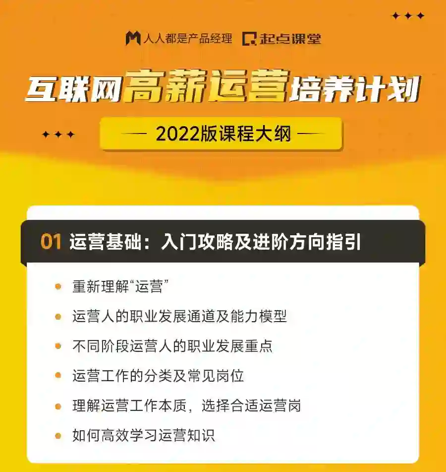 为了赋能运营人的职业成长,起点课堂联合人人都是产品经理,开设了一门《互联网高薪运营培养计划》课程。