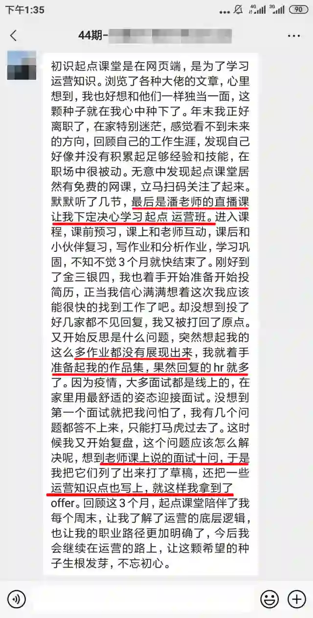 成功转岗新媒体运营,薪资增长50%的小狮子说:起点课堂陪伴了我的每个周末,老师们用心的传道受业解惑,让我了解运营的底层逻辑,也让我对职业路径更加明确。