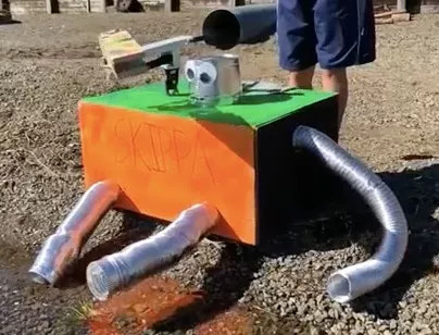 马克·罗伯制造的打水漂机,丢水漂的是左上角那个手臂。