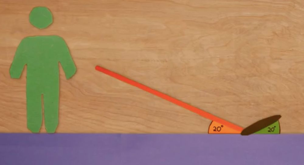 他们发现的第二条要诀就是,不要垂直地把石头丢到水里,丢的时候要尽量保持水平。如果石头的运动方向和水面夹角超过45度,那么石头就不会弹起来,而会直接沉湖自尽。