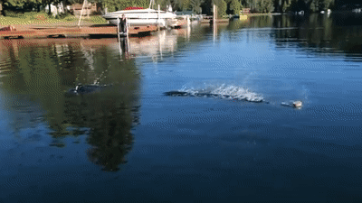这种“哇啵霸”的弹性十足,因此用它来打水漂的时候就不需要特意制造正确的入射角,平平地射出都可以打出水上漂的效果。看动图的话,真的很像神奇宝贝出场画面——