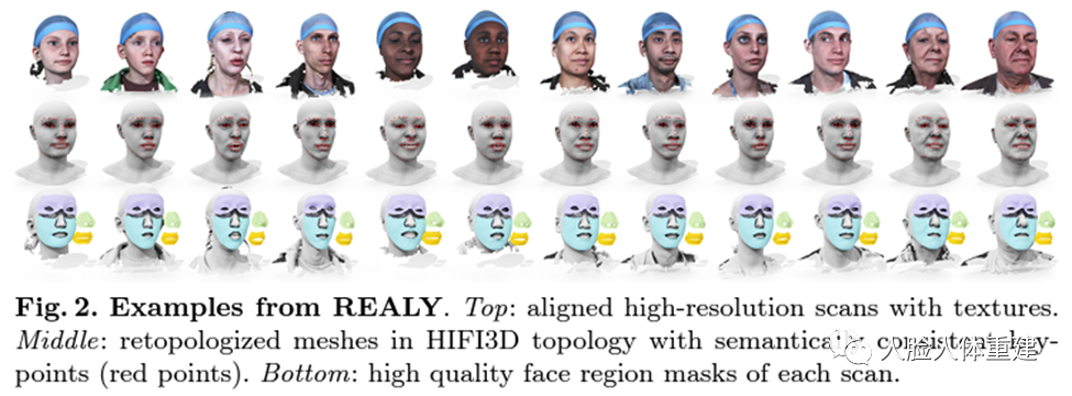 数据集的构建过程借助256个关键点进行对齐和转拓扑,确保了统一拓扑的mesh的质量,进而保证了不同id的人脸区域的mask以及关键点的一致性。