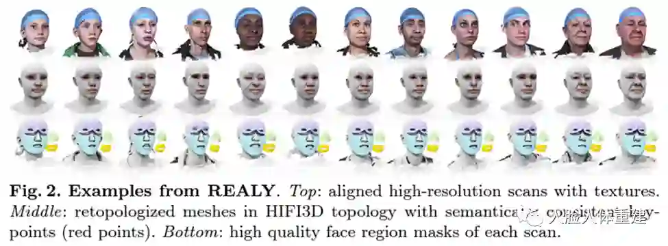提出一个新的3D人脸重建的benchmark数据集,名为REALY benchmark,和相应的评估方法 ,能对于重建的3D人脸模型在不同脸部区域进行细粒度评价,并对于主流的单张照片3D人脸重建算法进行了详细的评测。