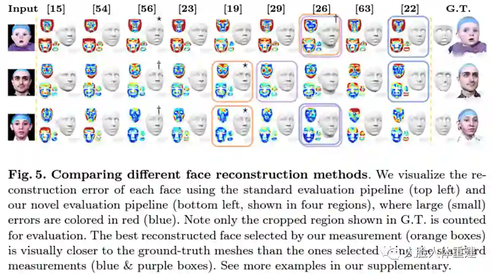 我们通过user study投票选出各组最好(*)/次好(†)的人脸,通过比较不同评价流程选出的最好的人脸(橙、蓝、紫框)可以发现,我们的评价流程(橙框)选出的最好的人脸与user study的投票结果匹配程度更高。并且,我们的评价流程给出了细粒度的评测结果,即:对不同的人脸区域都能进行定量的评价和比较。