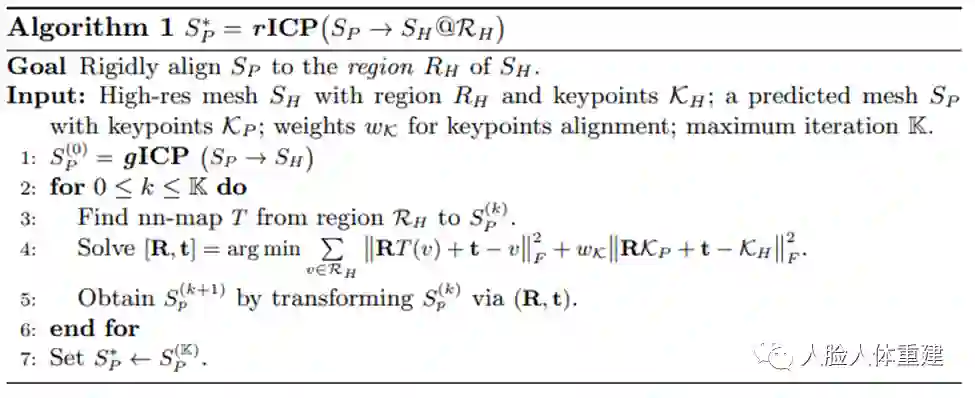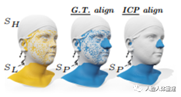 对应关系的建立: 在局部对齐的基础上,我们需要建立ground-truth scan某一区域上的每一个点与predicted mesh之间的对应点并计算两者的误差。考虑到先前基于最近点的方式存在的问题,我们提出一个新的对应关系的建立方法,提高了关键点语义信息的一致性。