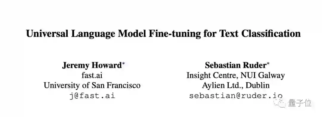 论文两名作者一是Fast.ai创始人Jeremy Howard,在迁移学习上经验丰富;一是自然语言处理方向的博士生Sebastian Ruder,他的NLP博客几乎所有同行都在读。