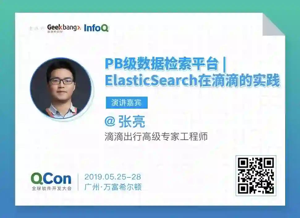 另外,张亮将在 5 月 27-28 日 的 QCon 全球软件开发大会(广州站) 上分享「PB 级数据检索平台 | ElasticSearch 在滴滴的实践」,会有更多干货内容,感兴趣的同学可以到现场与张亮老师面对面交流。目前,大会倒计时 中,日程已经上线,所剩席位已经不多,想参与的小伙伴抓紧时间抢票锁定席位啦!有任何购票问题,欢迎咨询票务小助手鱼丸:13269078023(微信同号)。