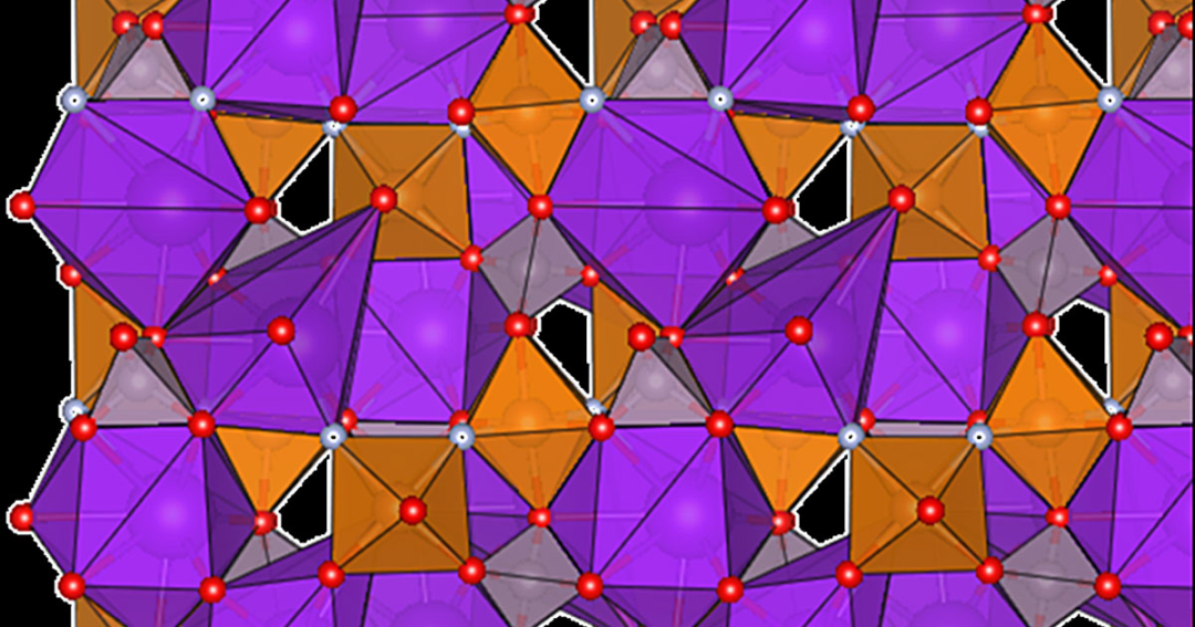 这张图显示了一种被称为 KVPO4F 的材料结构,这种材料被用在一些钾离子电池的电极上