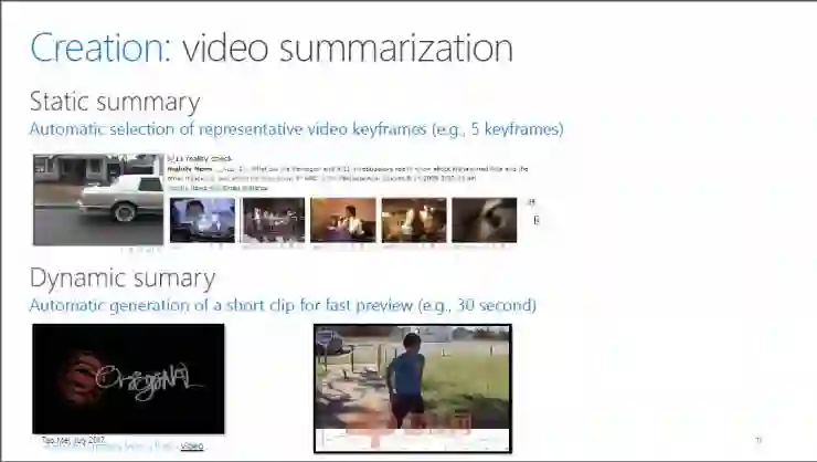 今天一个视频,可能15分钟,可能是1个小时,能不能给你5个关键帧你就知道这个镜头。一个8分钟的视频能不能生成30秒的内容,比如说来了一个运动视频,通过智能分析知道这个运动视频里面哪个部分最应该看,这是它的重点。