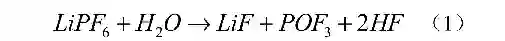 电池中的电解液极易与水反应,生成有毒的 HF 气体,反应如公式(1)所示: