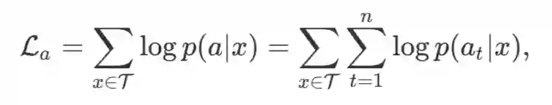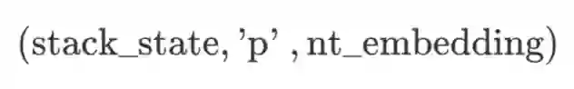 a 为状态转移系统的动作(action)序列,包括 NT,TER 和 ACT(对应原文的 RED),分别代表在栈中加入一个非终结符、在栈中加入一个终结符以及规约;