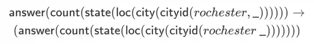 通用谓词表:这些谓词与领域无关,例如 (∗) 中的 answer,count,state,loc,city,cityid,_ 等,详细的关于通用谓词表见附录-通用谓词)。
