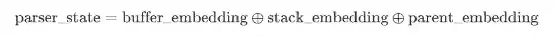 最后将三个嵌入表示拼接得到解析器状态的嵌入表示 parserstate:
