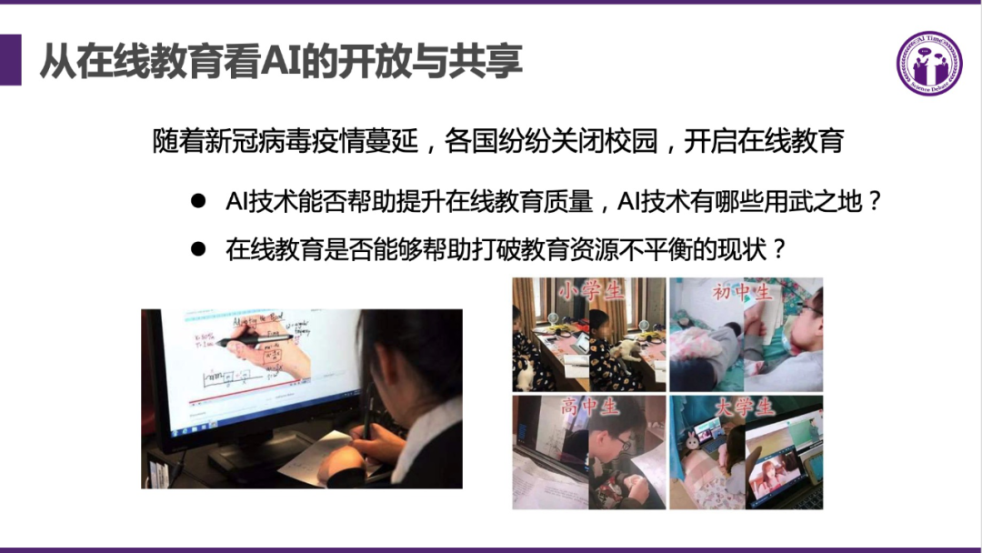 做任何一个方向不能只从 AI 角度,还从行业的角度看。唐文斌根据远程办公的经验,从交流效率、创意激发的角度,认为远程教育仍然存在一定的局限性。