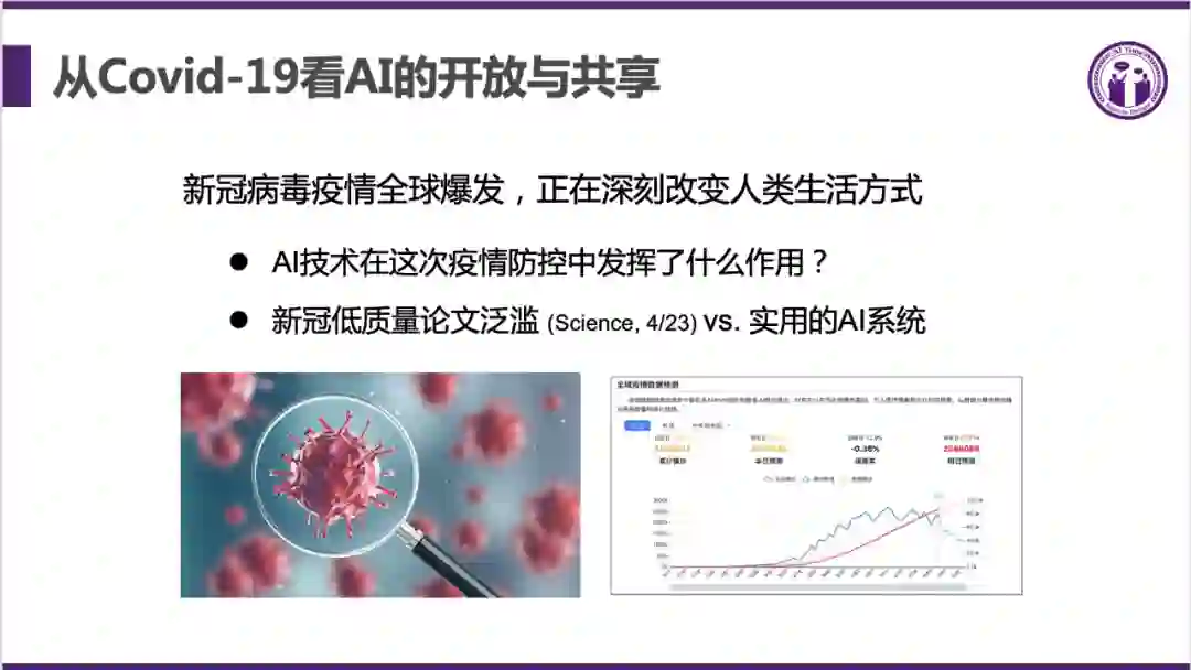 对于 AI 在病理、病源方向的应用,唐文斌提出做的东西应该和先前积累相关联,张钹院士和李向阳教授认为人工智能要想在某个领域里起作用,必须跟那个领域的知识相结合,不能单纯靠数据,这就是我们现在经常提倡的,第三代人工智能最重要的方向就是把数据跟知识结合起来,要做新冠病毒溯源,不能就数据论数据,必须跟理论知识结合,没有任何数据知识找到准确的结果可能性很小。