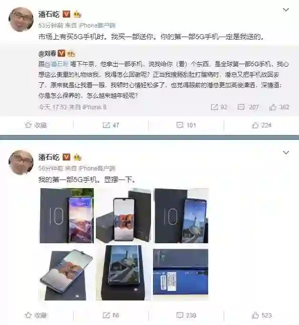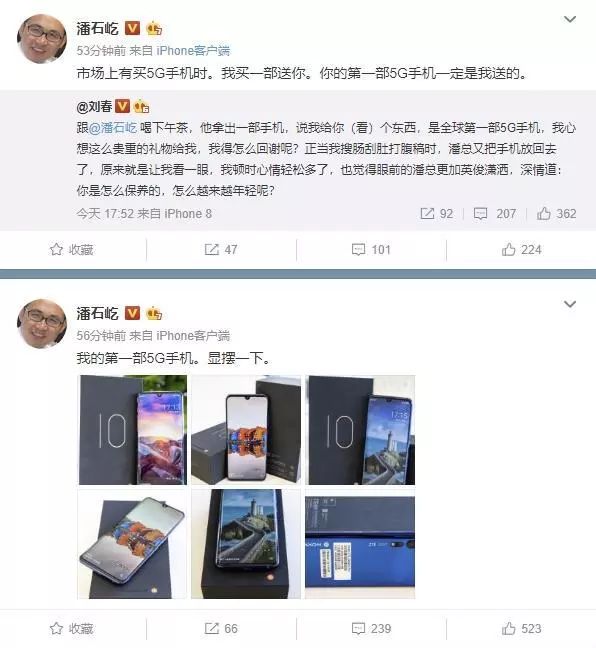 潘石屹获中国首张5G卡,晒中兴5G手机