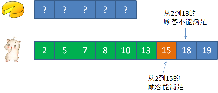 第2块蛋糕大小是5,第2个顾客饭量是5,刚好满足顾客。