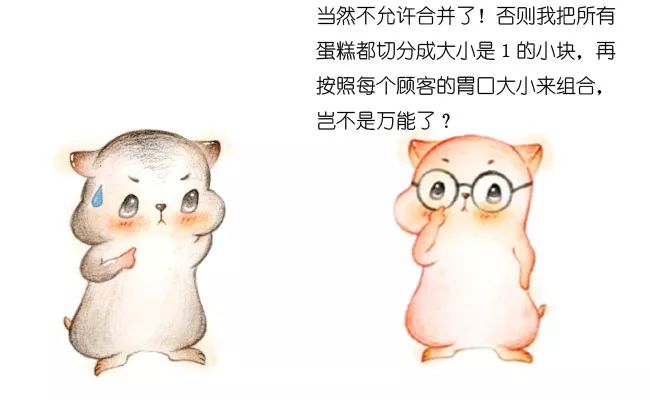 但是,若干块较小的蛋糕,不允许合并成一块大蛋糕,用来满足一个胃口较大的顾客: