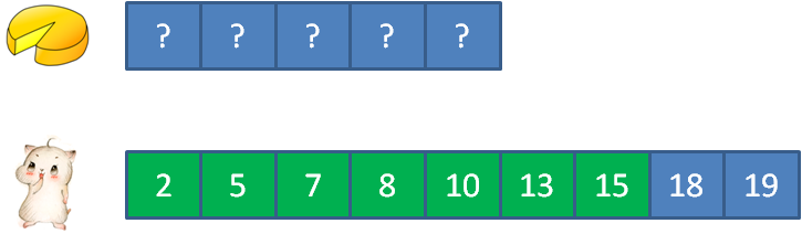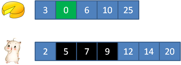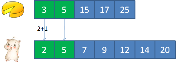 我们有5块蛋糕,蛋糕的大小分别是 5,17,25,3,15