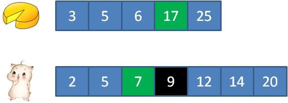 比如:输入cakes集合 {2,9};输入mouths集合 {5,4, 2,8}