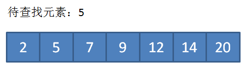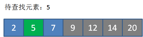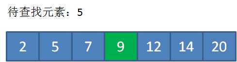 2.判断9>5,选择元素9左侧部分的中间元素,下标mid = (0+2)/2 = 1,因此中间元素是5:
