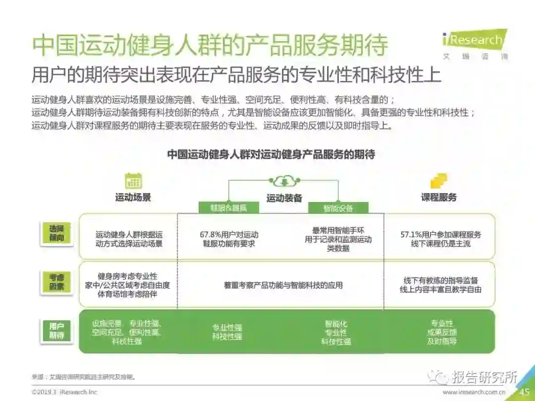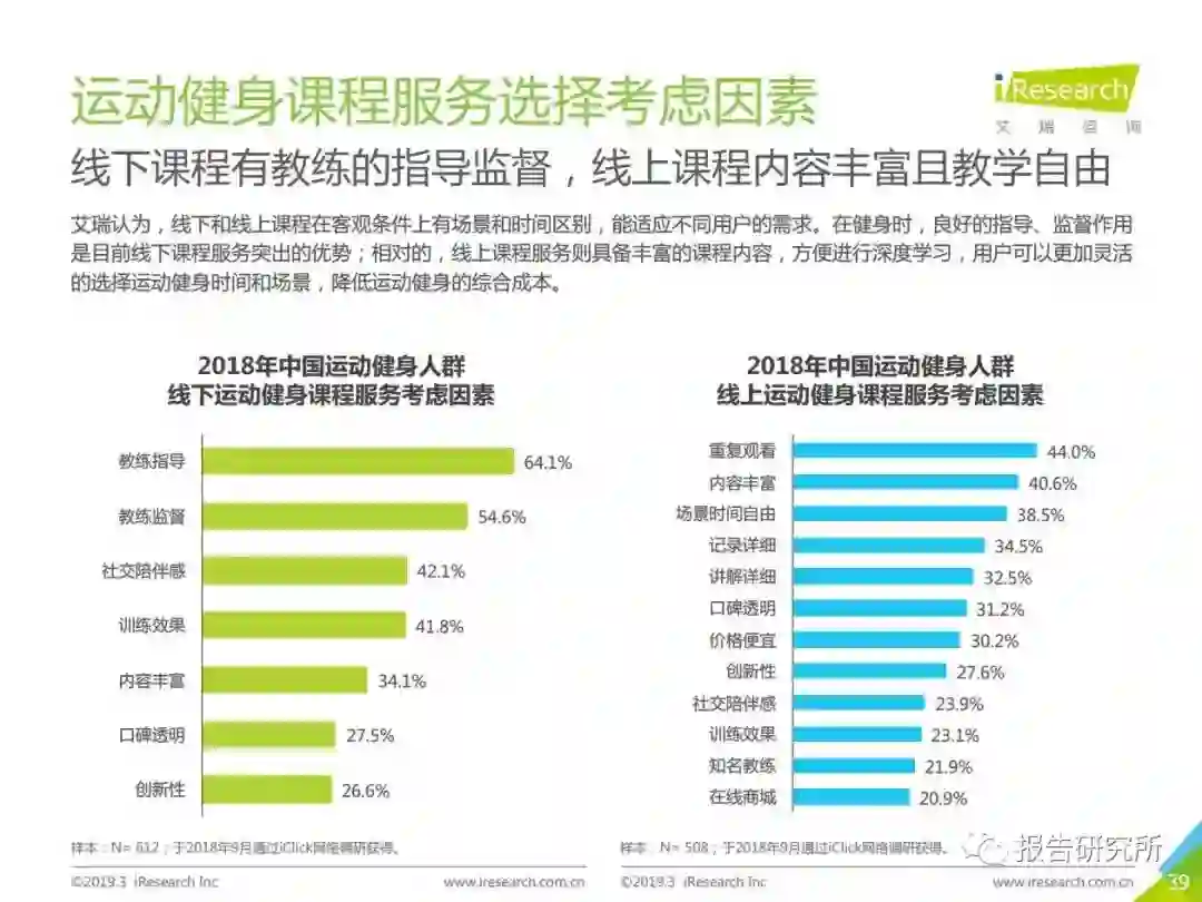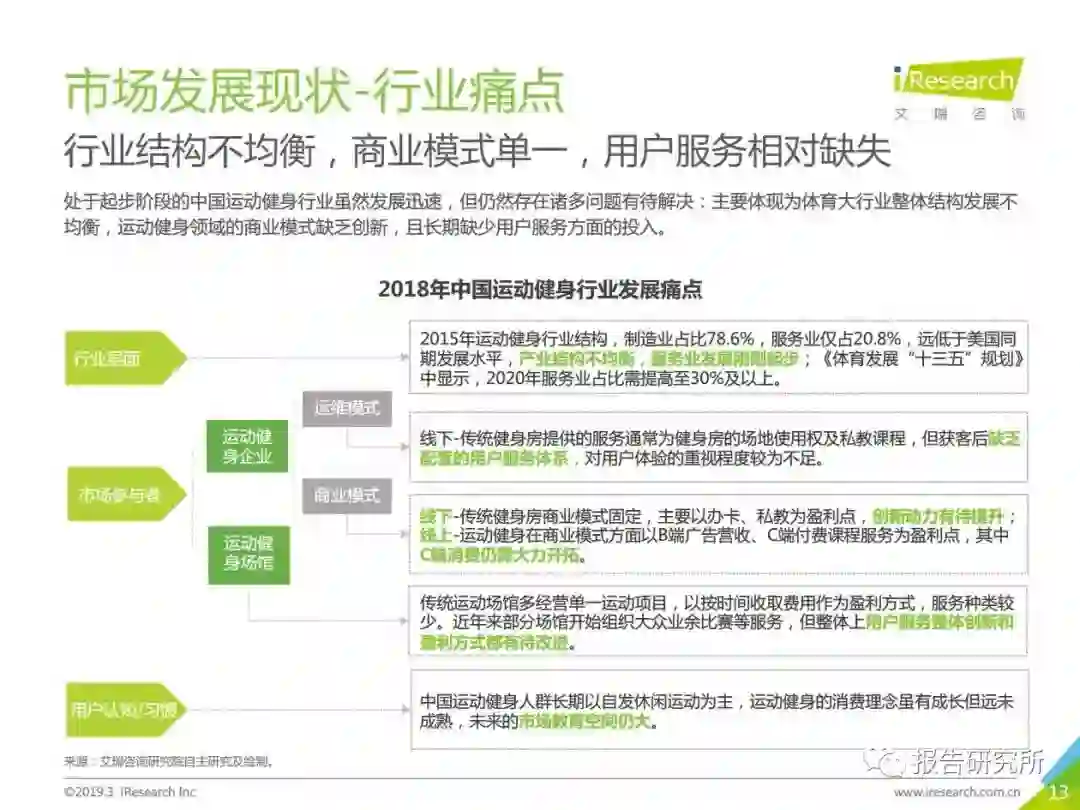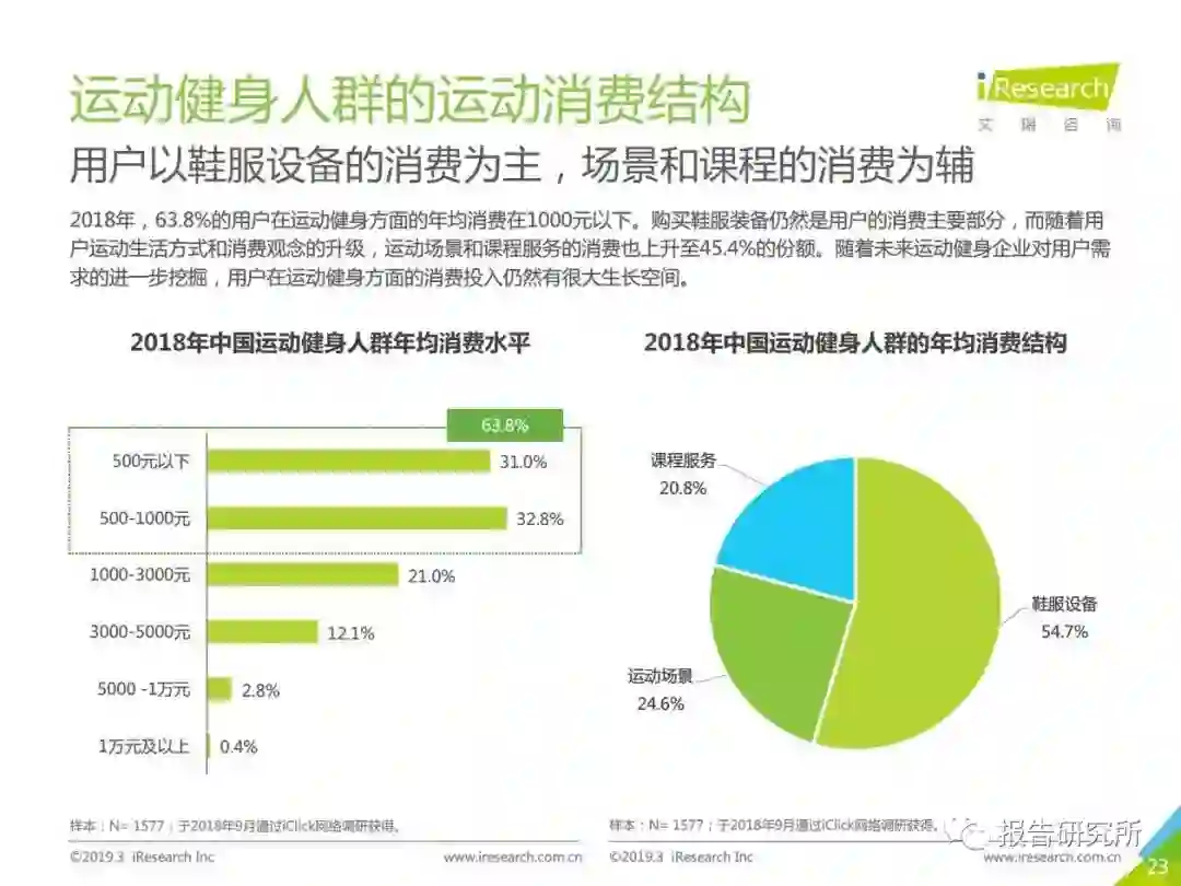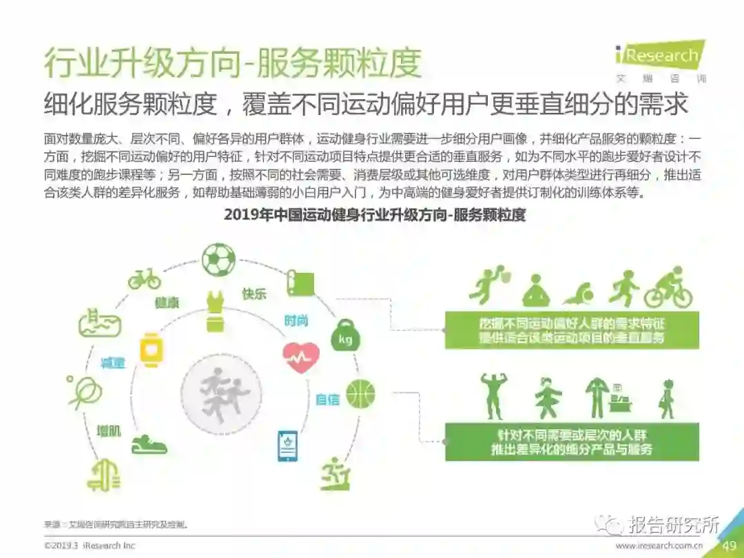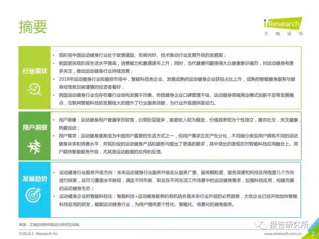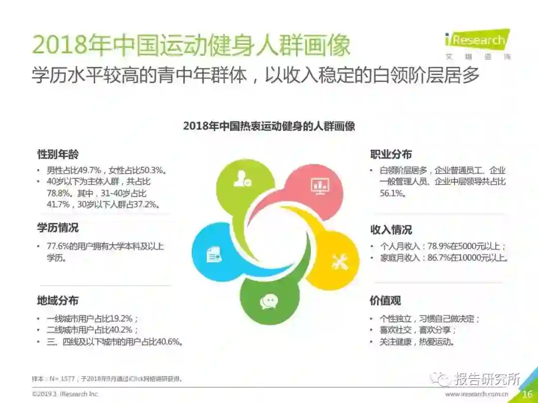 报告从行业总体健身行业概览、健身房竞争格局,和用户健身消费行为三个方面研究。