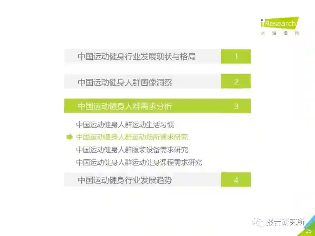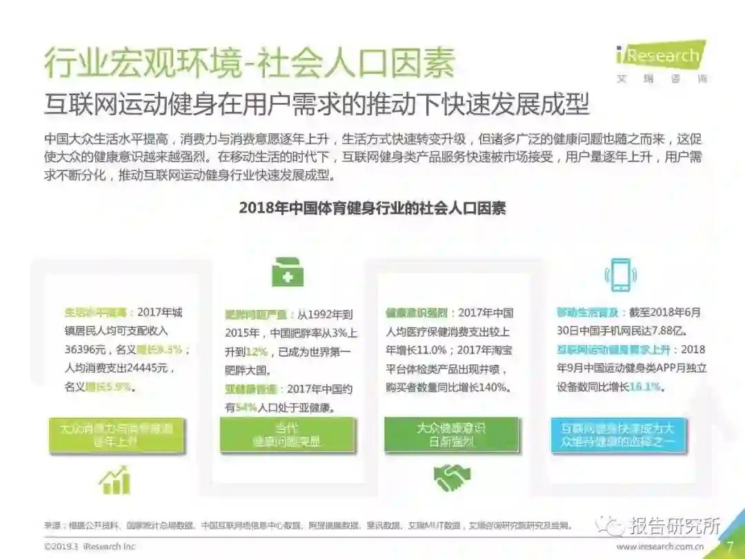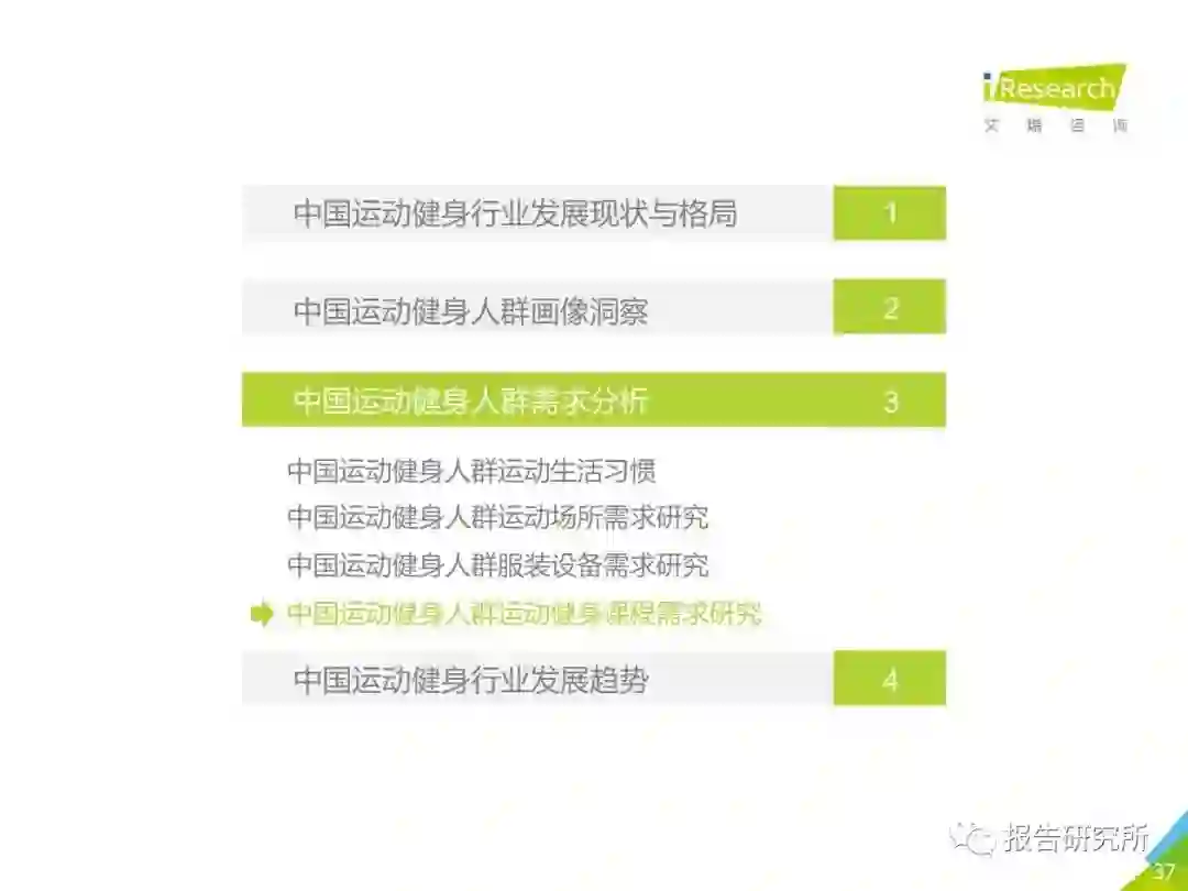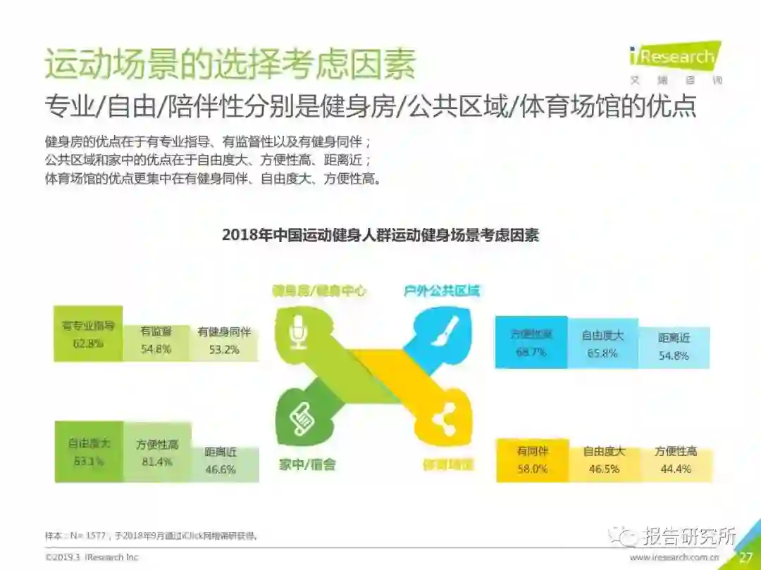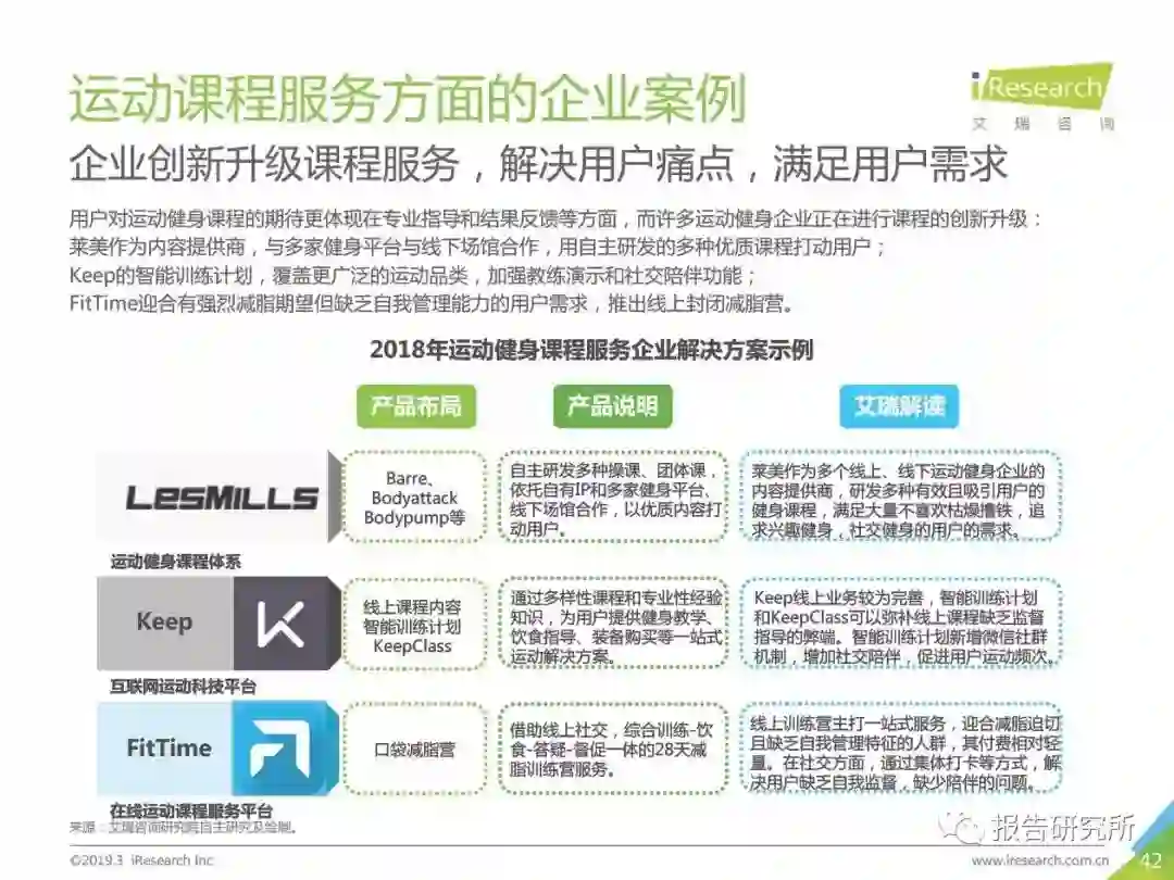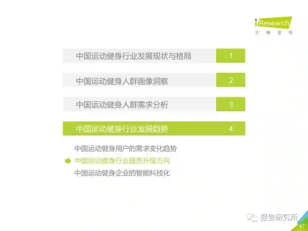 报告从行业总体健身行业概览、健身房竞争格局,和用户健身消费行为三个方面研究。