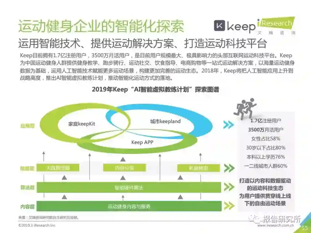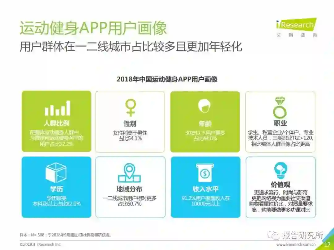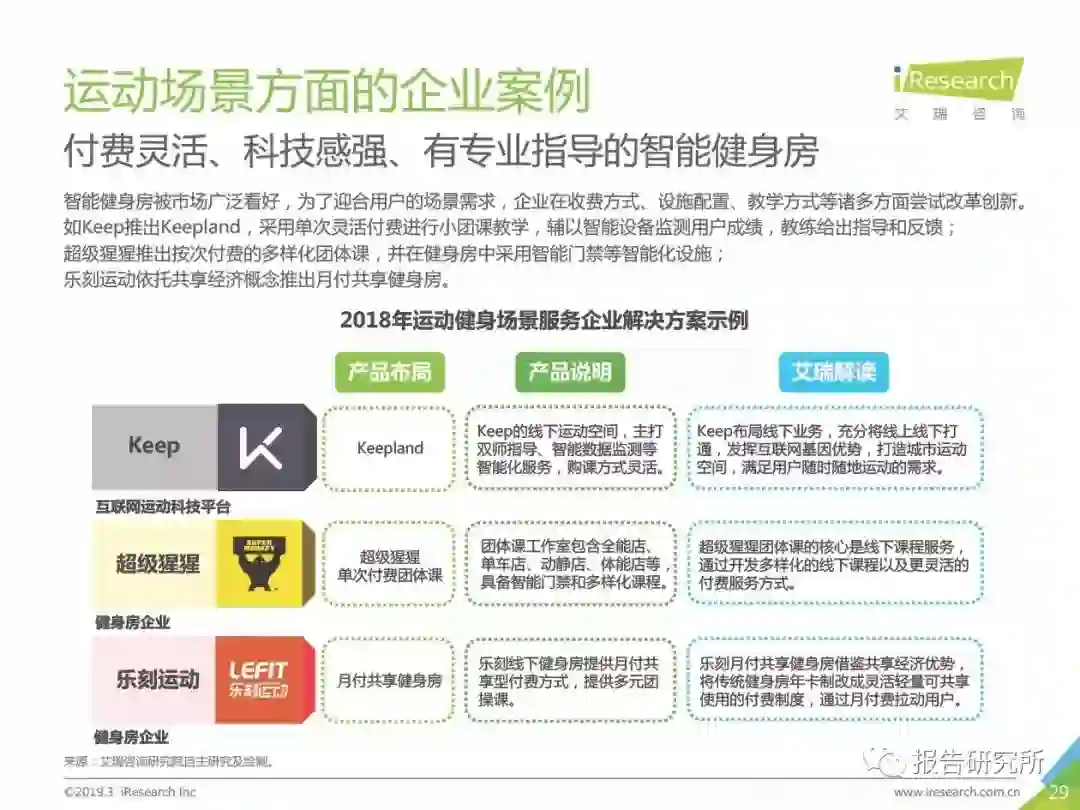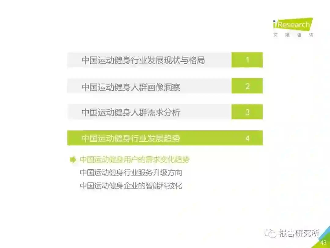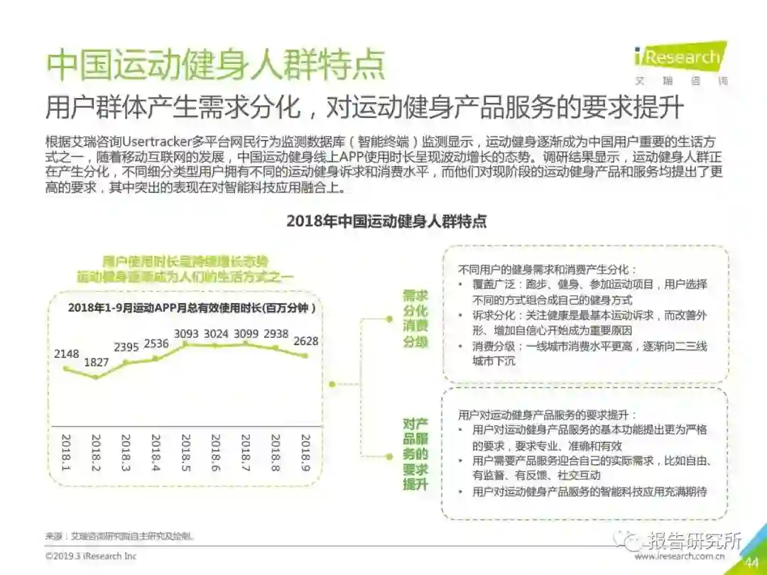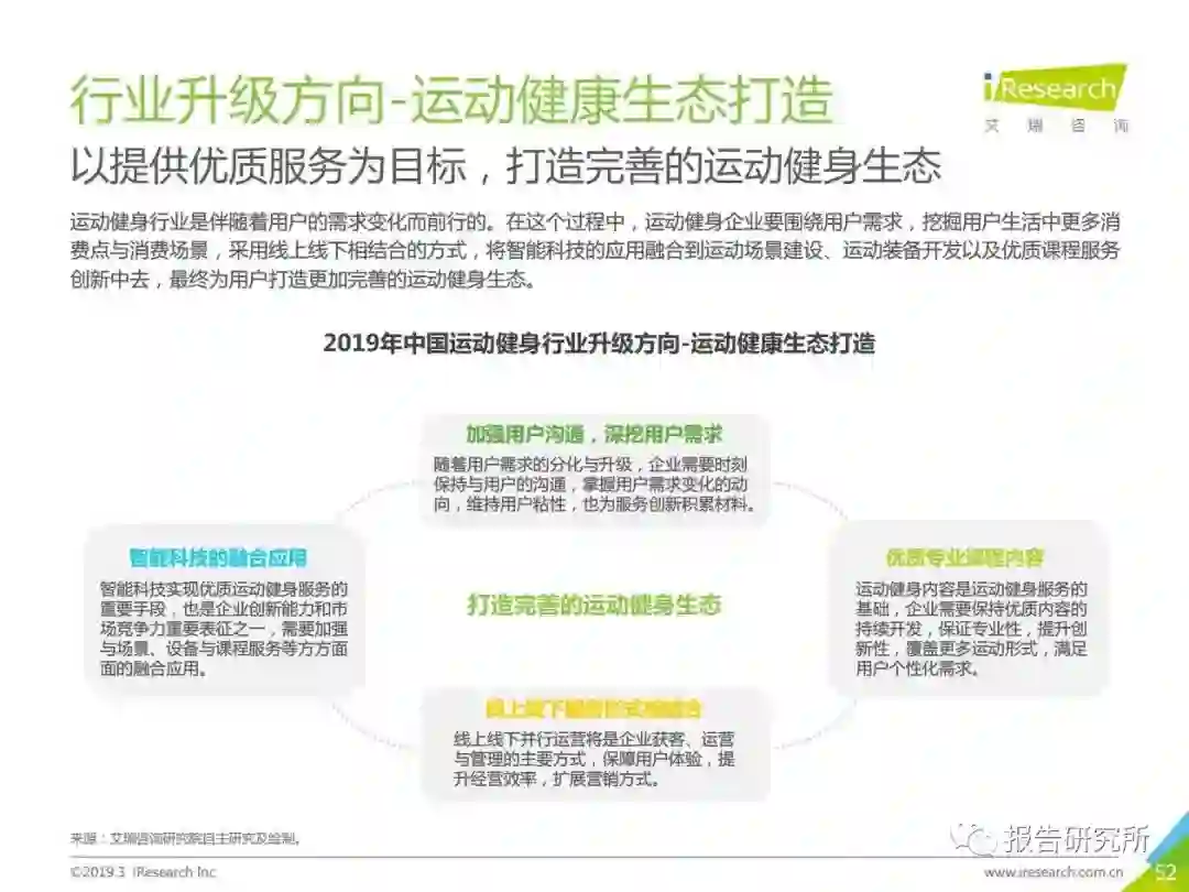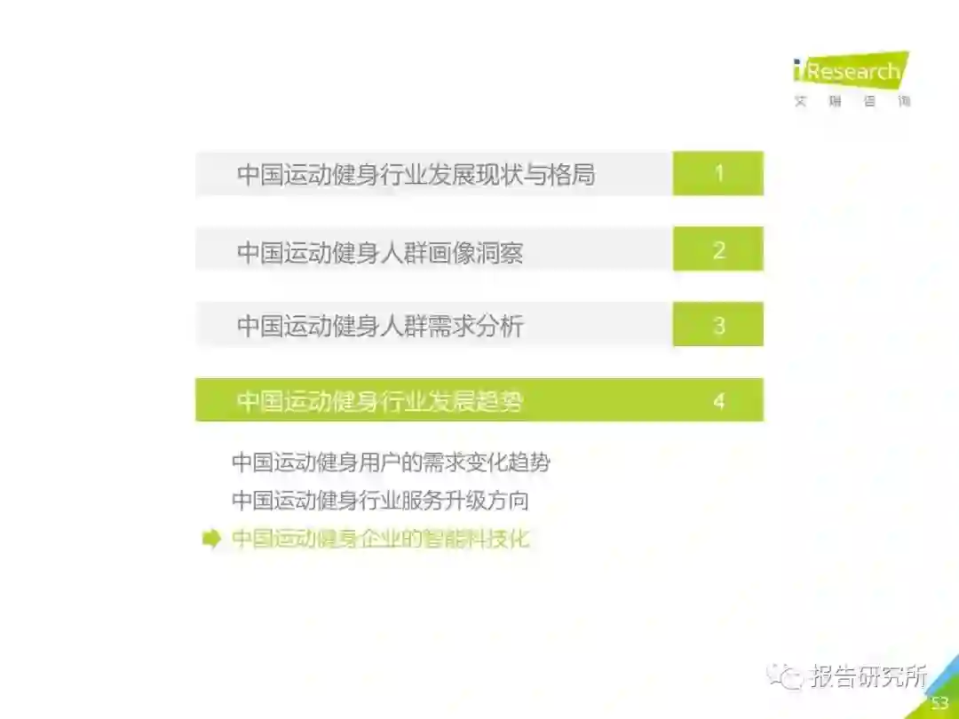 报告从行业总体健身行业概览、健身房竞争格局,和用户健身消费行为三个方面研究。
